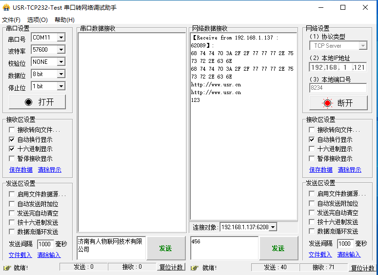 USR-W610基本通訊測試http://m.0575400.com/Faq/338.html