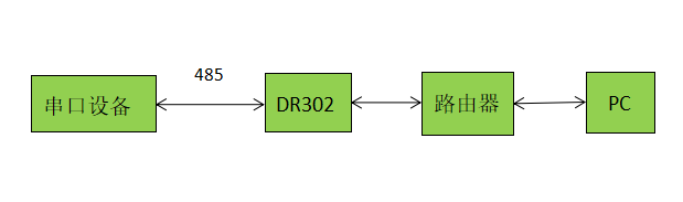 1、將串口服務(wù)器 DR302(USR-DR302,簡稱302)的串口通過串口線(或USB 轉(zhuǎn)串口線)與pC相連接,通過網(wǎng)線將302的網(wǎng)口pC的網(wǎng)口相連接,檢測硬件連接無錯誤后,接入我們配送的電源適配器,給302供電。