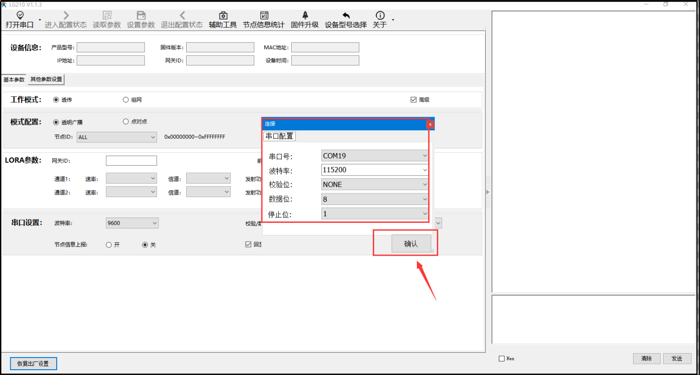模式配置:“透明傳輸”,節(jié)點ID:“ALL”