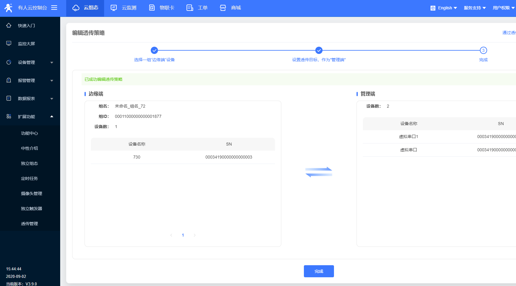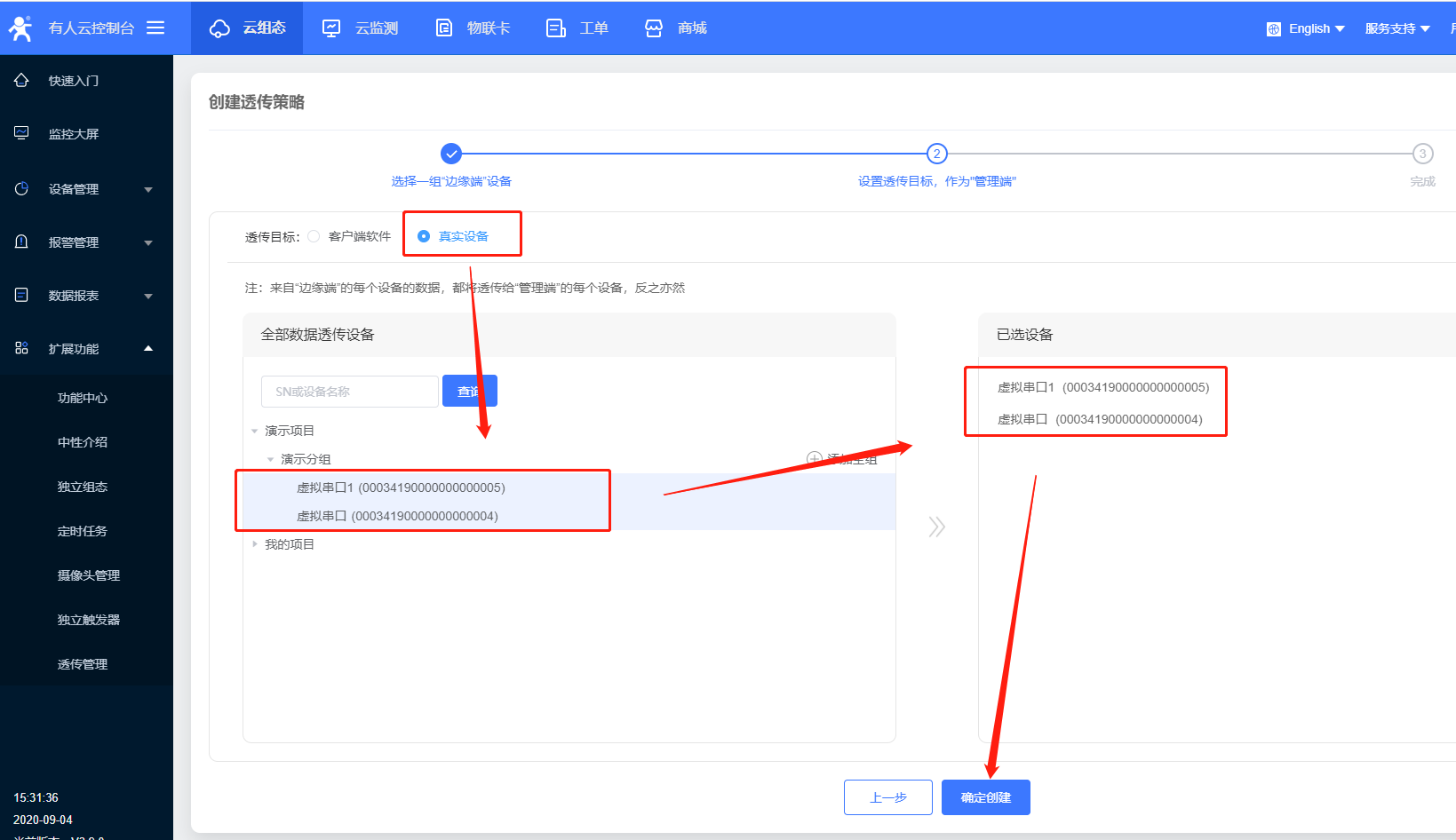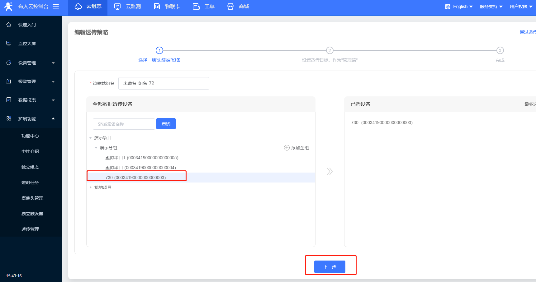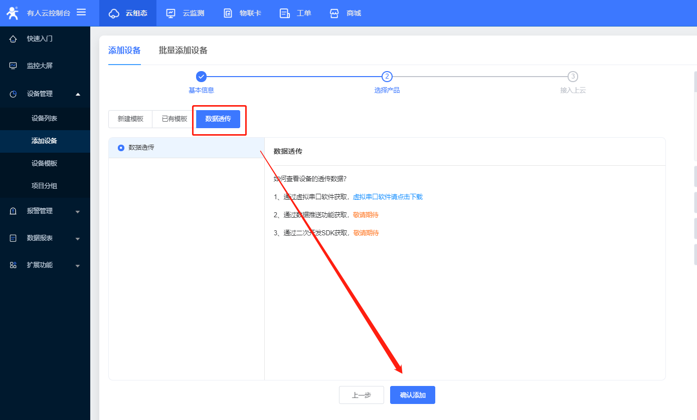 3、選擇數據透傳,點擊確認添加,則設備添加成功