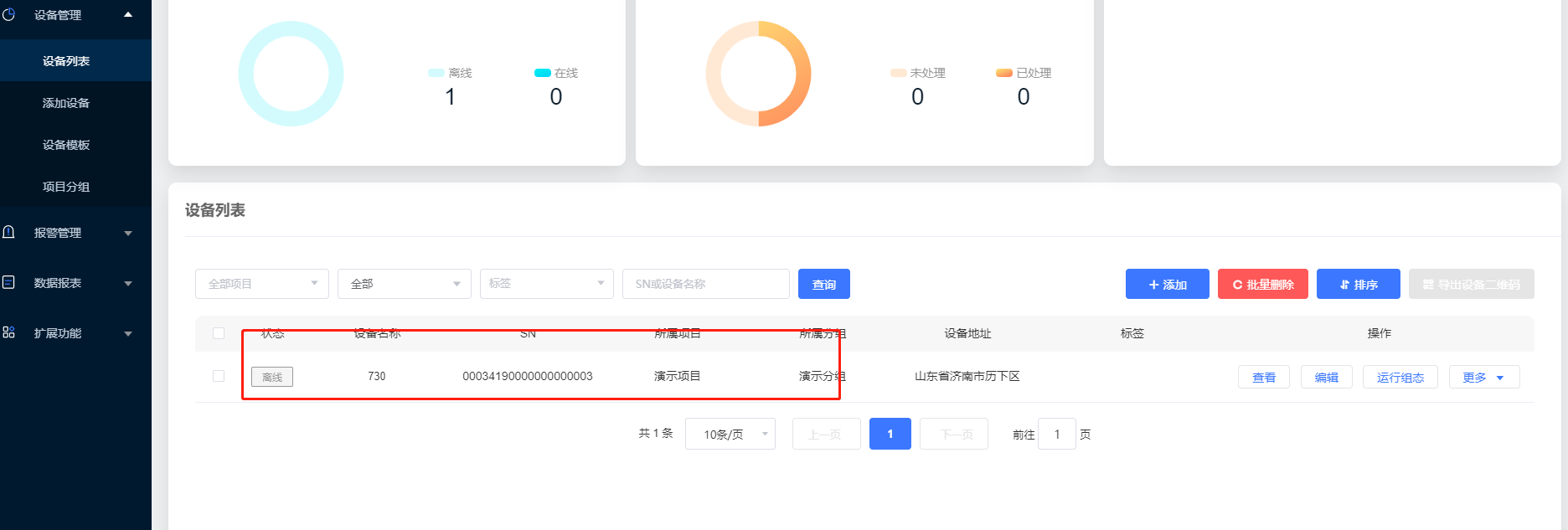2. 在設備管理,添加設備中添加設備