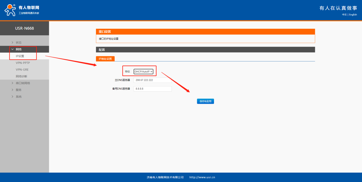 5、網絡IP設置中,設置為DHCP動態IP,然后系統頁面重啟設備,參數需要重啟生效。