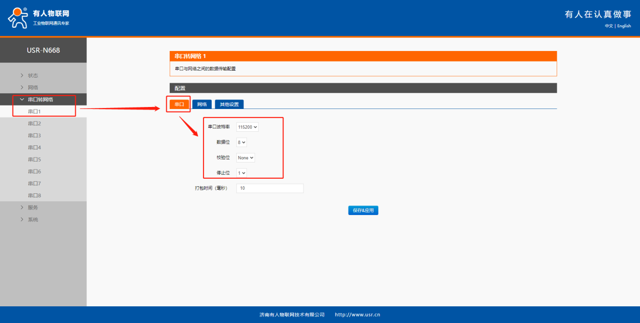7、串口轉網絡確認確認串口參數是115200,N,8,1。