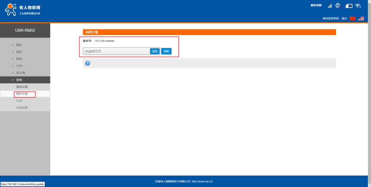 5.在系統中固件升級選項,可以看到現在的版本號以及刷寫新固件的地方