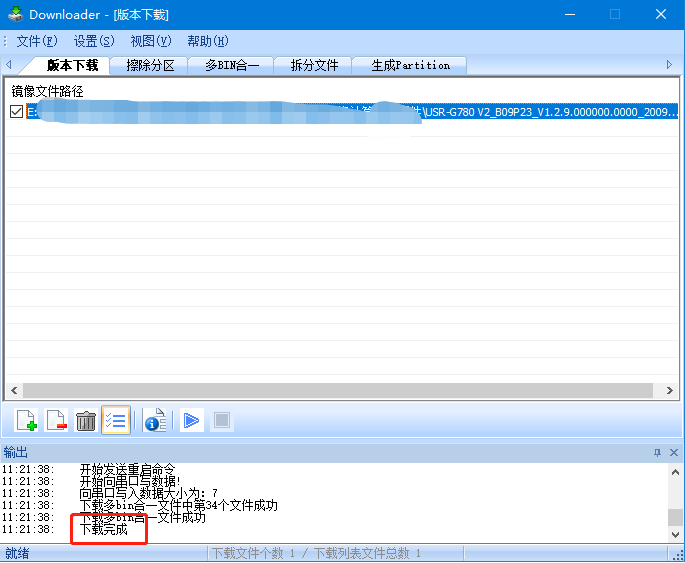 6、加載固件文件(如果先前有文件,先將先前的文件刪除),然后開始下載固件