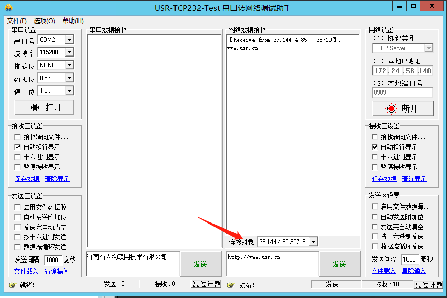 (2)測試說明:本測試連接的是我司的遠程服務器,實現的功能是在服務器端查詢或更改模塊的參數