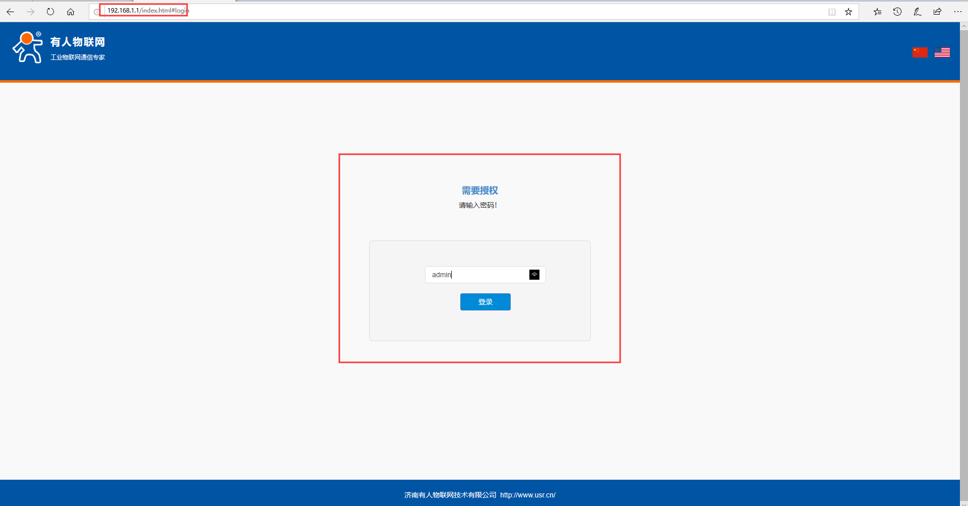 3.打開瀏覽器(不要用360瀏覽器),在地址欄輸入電腦獲取到的網(wǎng)關(guān),通過網(wǎng)關(guān)登錄內(nèi)置網(wǎng)頁界面,出廠默認(rèn)網(wǎng)關(guān)為192.168.1.1、密碼為admin