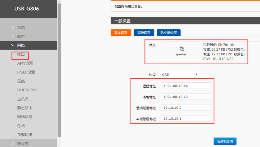 防火墻選擇WAN接口,設置完成后點擊保存應用