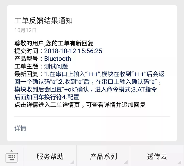 工單反饋結(jié)果通過微信消息推送給您。