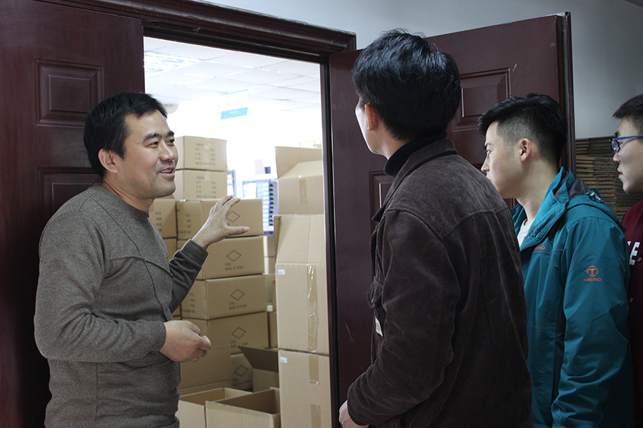 供應鏈副總房玉軍(左一)帶領大家參觀供應鏈基地
