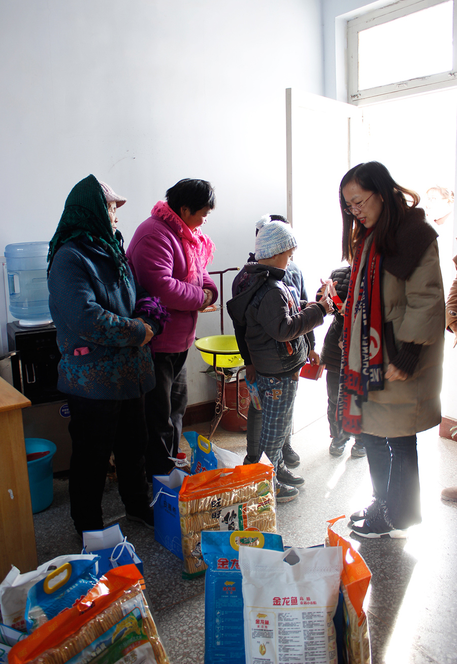 有人愛心小分隊將提前準備好的米面糧油等生活用品,親手交到此前幫助過的貧困兒童家庭手中,希望能為寒冬之際的他們帶去暖暖愛心。