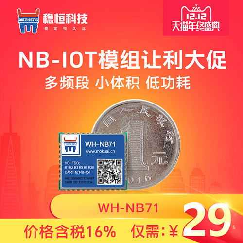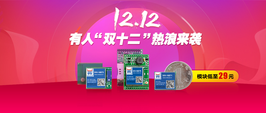 有人物聯網在本次“雙十二”狂歡盛宴中,推出NB-IoT模組讓利大促活動,單品最高直降20元。