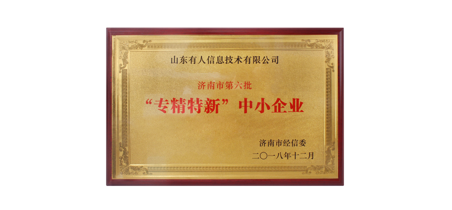 12月21日,有人物聯(lián)網(wǎng)榮獲由濟(jì)南市經(jīng)濟(jì)和信息化委員會(huì)評選的“第六批專精特新中小企業(yè)”稱號(hào)。