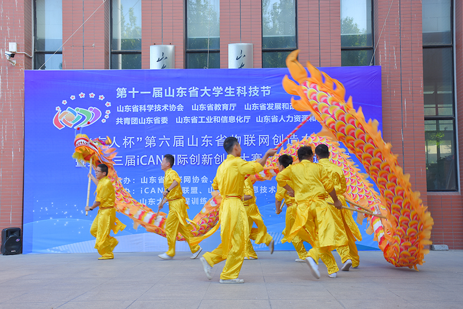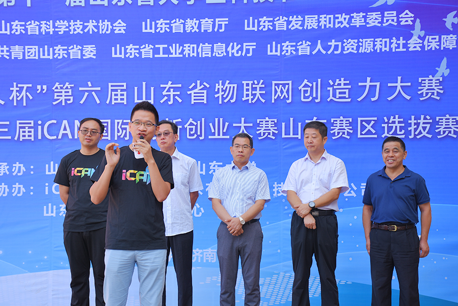 伴隨著舞龍舞獅表演團的一系列精彩表演,本次大賽正式拉開帷幕。山大創新創業學院院長顧問陳言俊教授,山東省科協學會服務中心主任劉利印,山東省物聯網協會副會長、山東鐵塔副總經理魏波,有人物聯網創始人兼CEO古欣,受邀上臺致辭。