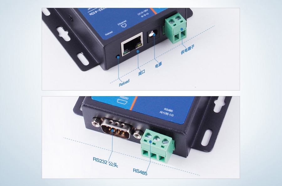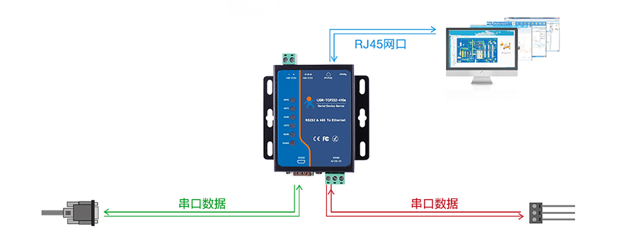 串口服務器:串口終端設備連接串口服務器RS232/485/422對應的串口進行通訊,將數據信息傳輸到遠程服務器上。