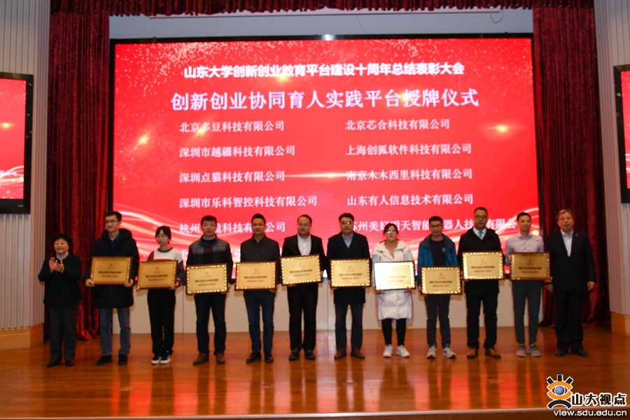 會上表彰了山東大學創(chuàng)業(yè)之星、創(chuàng)新之星,山東大學創(chuàng)新創(chuàng)業(yè)教育突出貢獻教師、優(yōu)秀指導教師、優(yōu)秀工作者以及《創(chuàng)業(yè)基礎》榮譽課程優(yōu)秀教師等,并為創(chuàng)新創(chuàng)業(yè)教育合作企業(yè)和創(chuàng)新創(chuàng)業(yè)協(xié)同育人實踐平臺授牌。山東大學創(chuàng)新創(chuàng)業(yè)教育優(yōu)秀指導老師獲得者代表陳桂友發(fā)言,他回顧十年來組織參加全國大學生智能汽車競賽取得的成果,對學校給予的良好創(chuàng)新創(chuàng)業(yè)實踐環(huán)境與激勵政策表示感謝。創(chuàng)新之星代表李登旺,創(chuàng)業(yè)之星代表古欣、李天馳,管理學院在校博士生劉泓辰等分別介紹了在山大讀書期間接受創(chuàng)新創(chuàng)業(yè)教育的學習成長經歷,感謝學校和老師在自己成長道路上給予的指導和支持,并各自匯報了畢業(yè)后在不同崗位的工作經歷以及取得的成績。