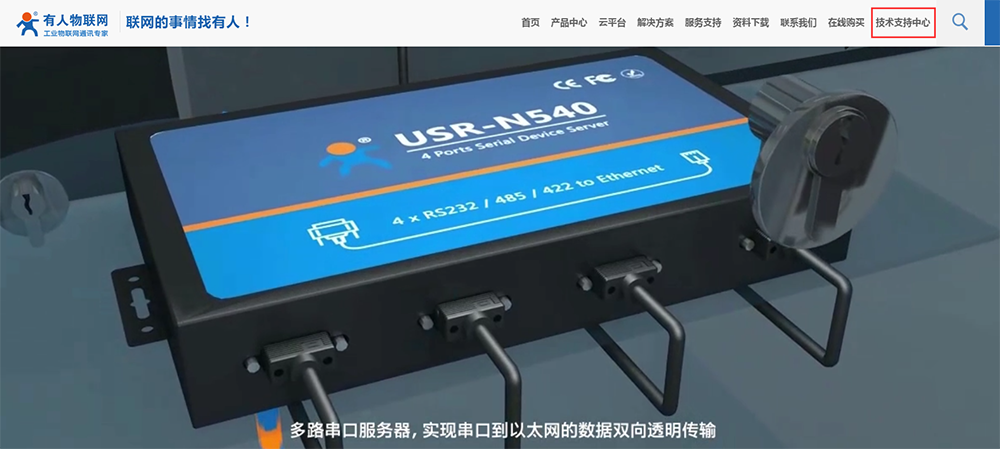 第一步:登錄有人官網,在右上角點擊“技術支持中心”