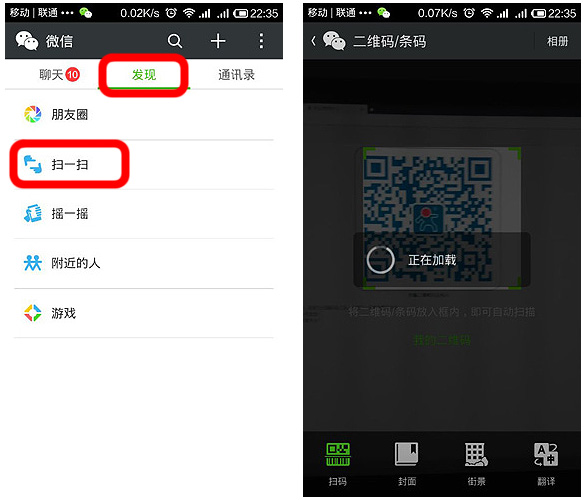 登陸微信,通過“發現 -> 掃一掃”,掃描公司微信二維碼;