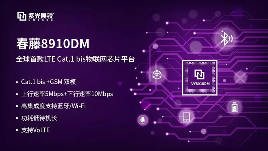 如今,這一問題得到了有效解決。去年11月16日,紫光展銳在第七屆中國移動全球合作伙伴大會上重磅發(fā)布全球首顆LTE Cat.1 bis芯片平臺—春藤8910DM。簡言之,這就是為Cat-1量身定制的,基于它做出的模塊價格將極具競爭力。