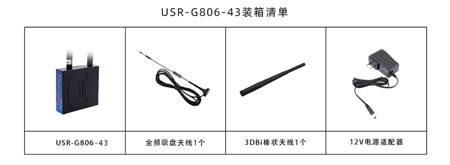 4G工業路由器G806搭配4G天線和wifi天線,以及12V電源一個。拿到4g工業路由器時,只需將兩個天線安裝到對應的位置上,連接電源,插上網線和流量卡,即可實現聯網。