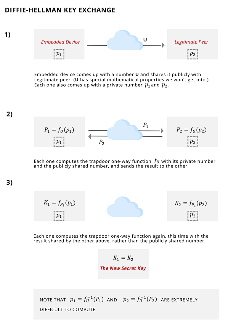 在任何時候,以我們選擇的任何頻率,我們都可以為嵌入式設備及其需要與之通信的任何對等方提供一種方法,以安全的方式商定新的密鑰。此新密鑰隨后可以用于對稱加密和解密,直到密鑰再次更改為止。如果發現任何秘密密鑰,那么黑客可以希望解密的傳輸數據量將取決于調用此新密鑰協商機制的頻率。