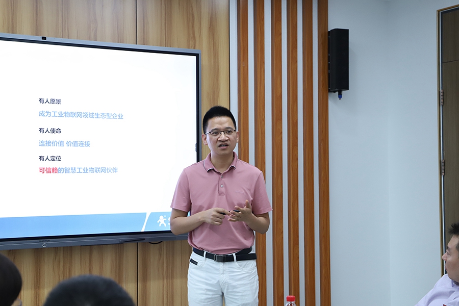 參觀公司現(xiàn)代化展廳時,集團戰(zhàn)略總監(jiān)、愛物聯(lián)總經理王偉向校友一行演示了公司在工業(yè)水處理、能源數據采集、智慧停車、智慧農業(yè)、智慧畜牧業(yè)等領域成功落地的解決方案案例。校友一行對有人物聯(lián)網在聯(lián)網通訊領域的業(yè)績贊不絕口。