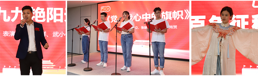 活動期間還進行了《黨,我心中的旗幟》朗誦等文藝表演。活動最后,在場全體人員滿懷對黨和祖國的真摯情感,齊聲唱響《我和我的祖國》,鏗鏘有力的聲音傳達出了身為共產黨員的自豪感和使命感,唱出了愛黨、愛國、奮進的時代情懷。