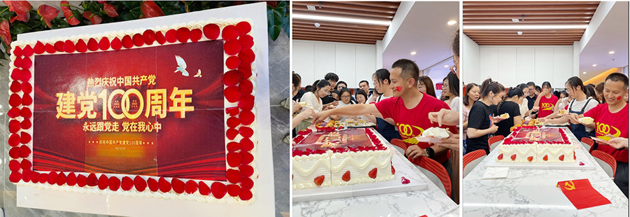 公司精心準備建黨100周年紀念蛋糕,全體員工共同祝福我們偉大的中國共產黨生日快樂,祝福我們偉大的祖國更加繁榮昌盛!