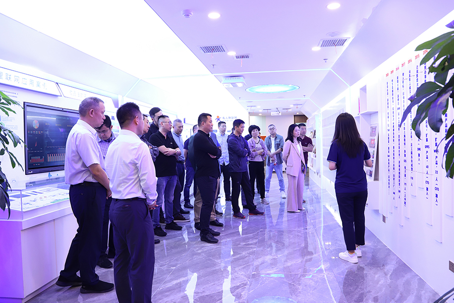 在工作人員的帶領下,到訪一行人首先參觀山東有人物聯網總部,在展廳通過工作人員的講解中,了解了有人物聯網的企業發展歷程、文化、研發產品及所獲榮譽。