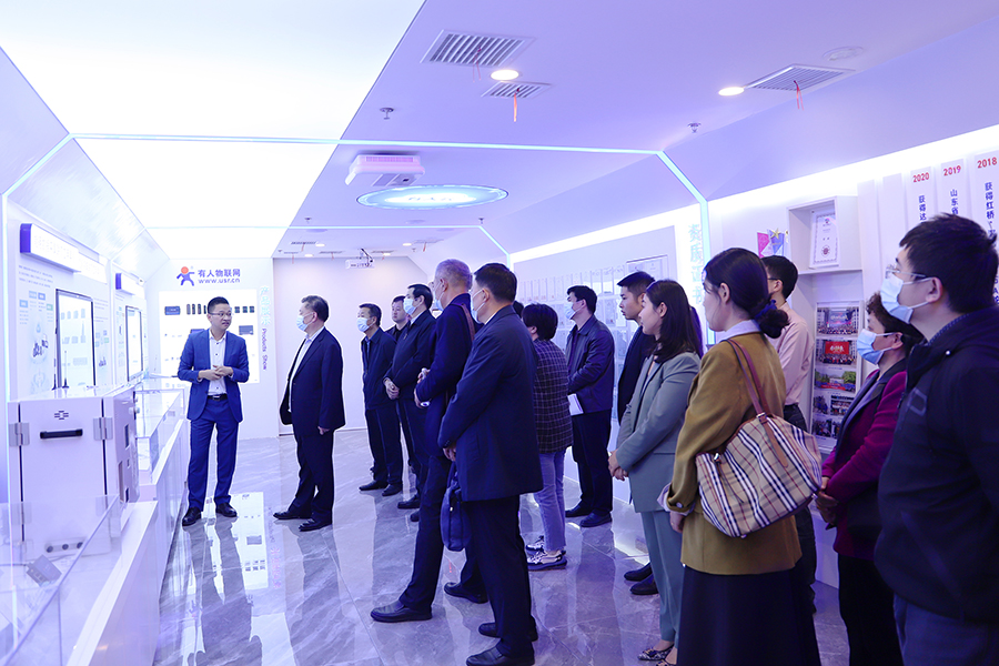 一行人在董事長古欣的陪同下,參觀了企業展廳,就有人物聯網在工業互聯網領域的建設及有人云平臺發展前景等情況進行了深入了解。