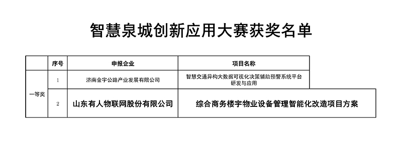 其中,“智慧泉城創新應用大賽”共評選出8家獲獎企業,有人集團參賽的“綜合商務樓宇物業設備管理智能化改造項目方案”突出重圍,榮獲一等獎,全市僅兩家!