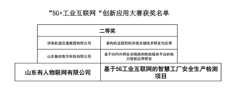 “5G+工業互聯網應用創新大賽”共評選出9家獲獎企業,有人集團參賽的“基于5G工業互聯網的智慧工廠安全生產檢測項目”斬獲二等獎,全市僅三家!