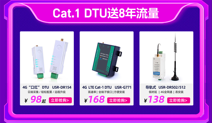 重點產品講解:新品USR-G805c重磅上市,關注直播間了解產品詳情,并參與1元秒殺活動。USR-M100、USR-G817兩款新品預告,工業路由器、DTU、串口服務器、LoRa、工控等將依次登場,我們帶你玩轉產品,秒到產品。