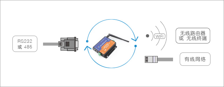 一句話解釋:實現串口(RS232/485)與WIFI的雙向透明傳輸的設備。