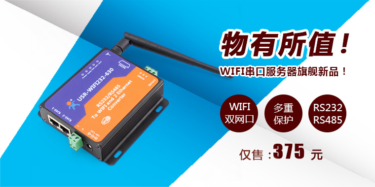 USR-WIFI232-630(簡稱:630)是“有人”今年新推出的支持雙網口的wifi無線串口服務器旗艦機型.