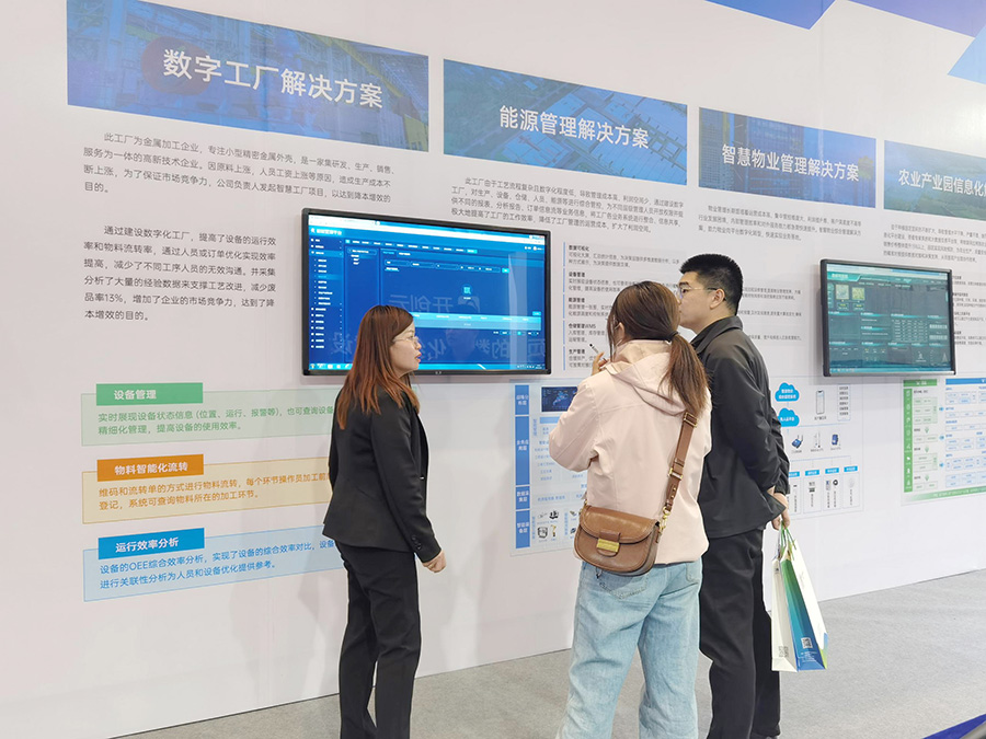 在展區(qū)內(nèi)上,有人物聯(lián)網(wǎng)展區(qū)以實(shí)物展示、視頻演示、圖文解釋等形式將企業(yè)數(shù)字化成果生動(dòng)展示,吸引眾多參展領(lǐng)導(dǎo)和企業(yè)代表駐足,就數(shù)字經(jīng)濟(jì)技術(shù)、服務(wù)等方向合作展開進(jìn)一步交流。