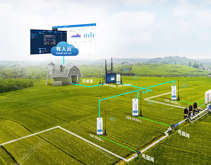LoRa設(shè)備在智慧農(nóng)業(yè)中的應(yīng)用,也能有效助力智慧農(nóng)業(yè)建設(shè)。將DR206-L接入農(nóng)田類傳感器,通過設(shè)置與LoRa網(wǎng)關(guān)無線數(shù)據(jù)傳輸,大農(nóng)田區(qū)域布置網(wǎng)絡(luò),分區(qū)管理,能夠快速實現(xiàn)遠距離數(shù)據(jù)收發(fā)和控制,對灌溉、病蟲害、施肥情況在線監(jiān)測與控制,從而減少值守人員數(shù)量,全面提升農(nóng)場生產(chǎn)管理水平,提高經(jīng)濟效益,降低運營成本。