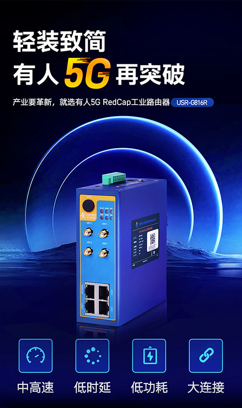 USR-G816R是一款5G RedCap工業路由器,支持獨立組網(SA)和非獨立組網(NSA),多DNN入網、鎖頻段頻點、5GLAN、網絡切片等豐富5G原生能力,同時支持國內移動/電信/聯通/廣電四大運營商全網通。它能夠為客戶提供不受距離限制的大數據遠程傳輸能力。