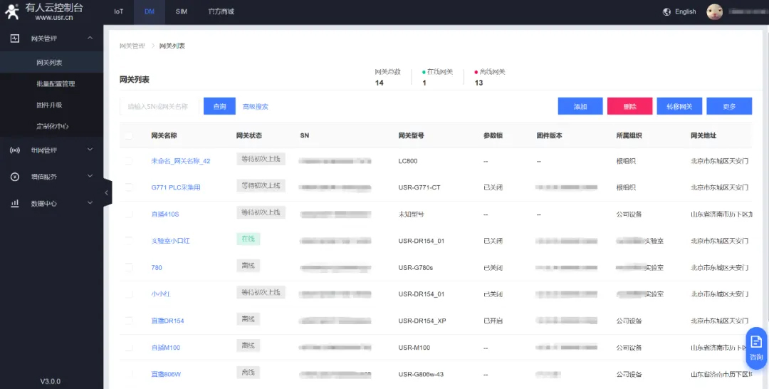 有人網關管理平臺,隨時遠程執行數據調試、參數調優、程序升級。