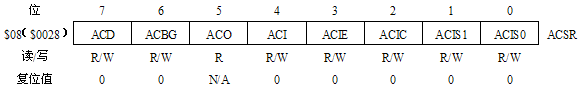 ACSR是模擬比較器主要的控制寄存器,其中各個(gè)位的作用如下: