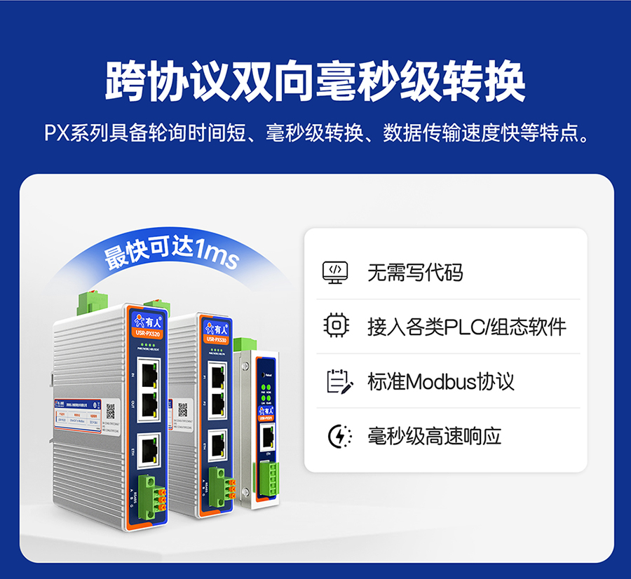 以上困境,交給有人全新推出的工業總線轉換器USR-PX系列!我們比任何人都清楚:穩定、兼容、成本才是工控剛需!