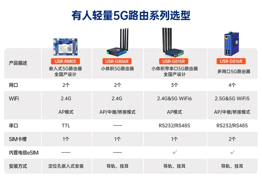 有人輕量5G系列已全面支持海思最新智能回落功能,即輕量5G路由器在無RedCap基站區域自動切換至5G/4G網絡,通信0中斷;支持異地組網服務,無需公網或專網IP即可實現多地虛擬組網,遠程運維終端更便捷。