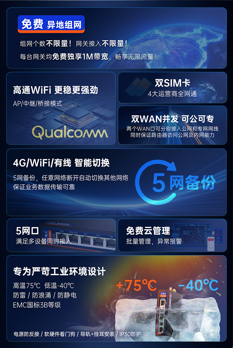 新成員上線:G805s 正式上架!全新雙卡4G工業路由器 G805s 現已上市,同樣支持免費異地組網功能,5網口,雙SIM卡,適用于多路攝像頭+PLC綜合運維監控場景。