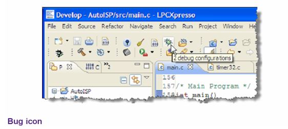 然后就可以從項(xiàng)目列表中選擇例程項(xiàng)目。要確保“Blinky”和“CMSIS”這兩個(gè)項(xiàng)目都存在。單擊“Finish”,這兩個(gè)項(xiàng)目將會(huì)被導(dǎo)入到當(dāng)前工作區(qū)。在快速啟動(dòng)面板里單擊“Build all projects(Debug)”開(kāi)始編譯Blinky例子和CMSIS庫(kù)。5.2 在開(kāi)發(fā)板上調(diào)試/運(yùn)行“blinky”程序 LPCXpresso開(kāi)發(fā)界面下,當(dāng)開(kāi)始調(diào)試的時(shí)候,程序會(huì)自動(dòng)下載到目標(biāo)MCU的flsh中。 在項(xiàng)目管理區(qū)中選中將要調(diào)試的項(xiàng)目,然后點(diǎn)擊快速啟動(dòng)面板中的“Debug project ‘Blinky’”。這時(shí)會(huì)彈出一個(gè)詢問(wèn)你使用哪種執(zhí)行方式(發(fā)布或調(diào)試,Release or Debug)選項(xiàng)的對(duì)話框,選擇“Debug(調(diào)試)”選項(xiàng),然后單擊“OK”完成程序下載和創(chuàng)建項(xiàng)目調(diào)試操作。如下圖所示。