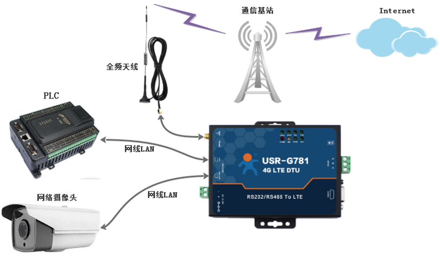 這種4G DTU組網(wǎng)方式適合于無法布設(shè)網(wǎng)線連接廣域網(wǎng)的場合,由于僅使用4G網(wǎng)絡(luò),所以購買4G網(wǎng)絡(luò)套餐時請適當(dāng)增加流量防止流量超出,造成不必要的后期維護。