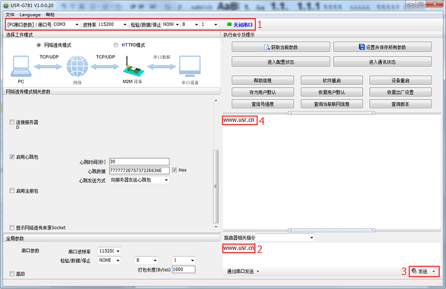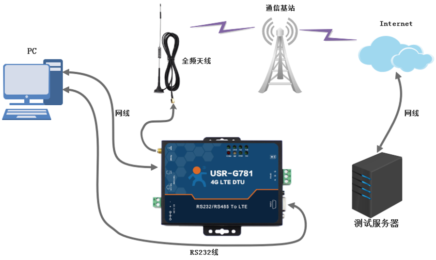 下面以帶網(wǎng)口的4G DTU USR-G781為例,簡(jiǎn)單陳述4G DTU如何進(jìn)行測(cè)試。