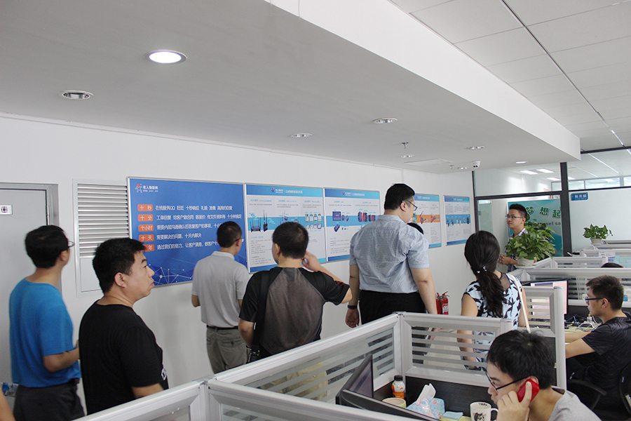 從公司的營銷部,市場部,技術部一路走來,古總熱情的為師生們介紹了有人物聯網的組織架構以及員工風貌,當駐足公司的文化墻時,師生們對有人物聯網的企業文化產生了濃厚的興趣。