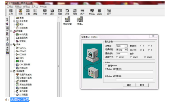 第三,選擇組態王與PLC通信波特率和選擇PLC類型。