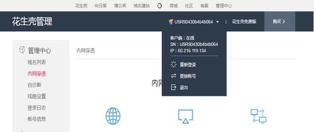 第六,內網穿透。切換到賬號登錄后,點擊左側的內網穿透。