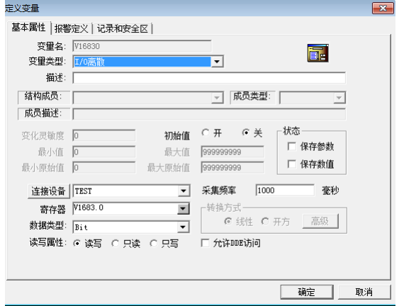 1.添加V16830,變量類型為離散,數據類型為Bit。